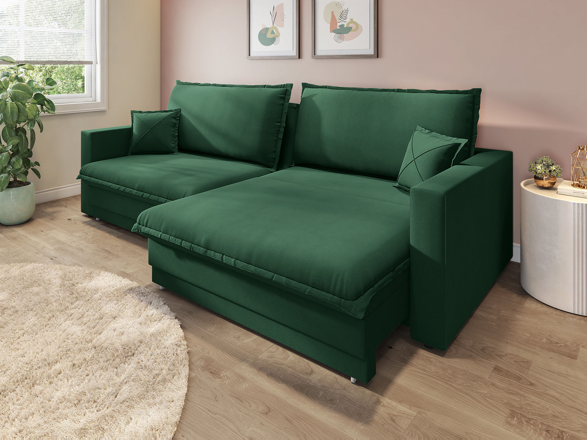 Inovador Sistema De Sofá sem caixa, com visual de fixo que vira retrátil e sem almofada se torna uma cama.