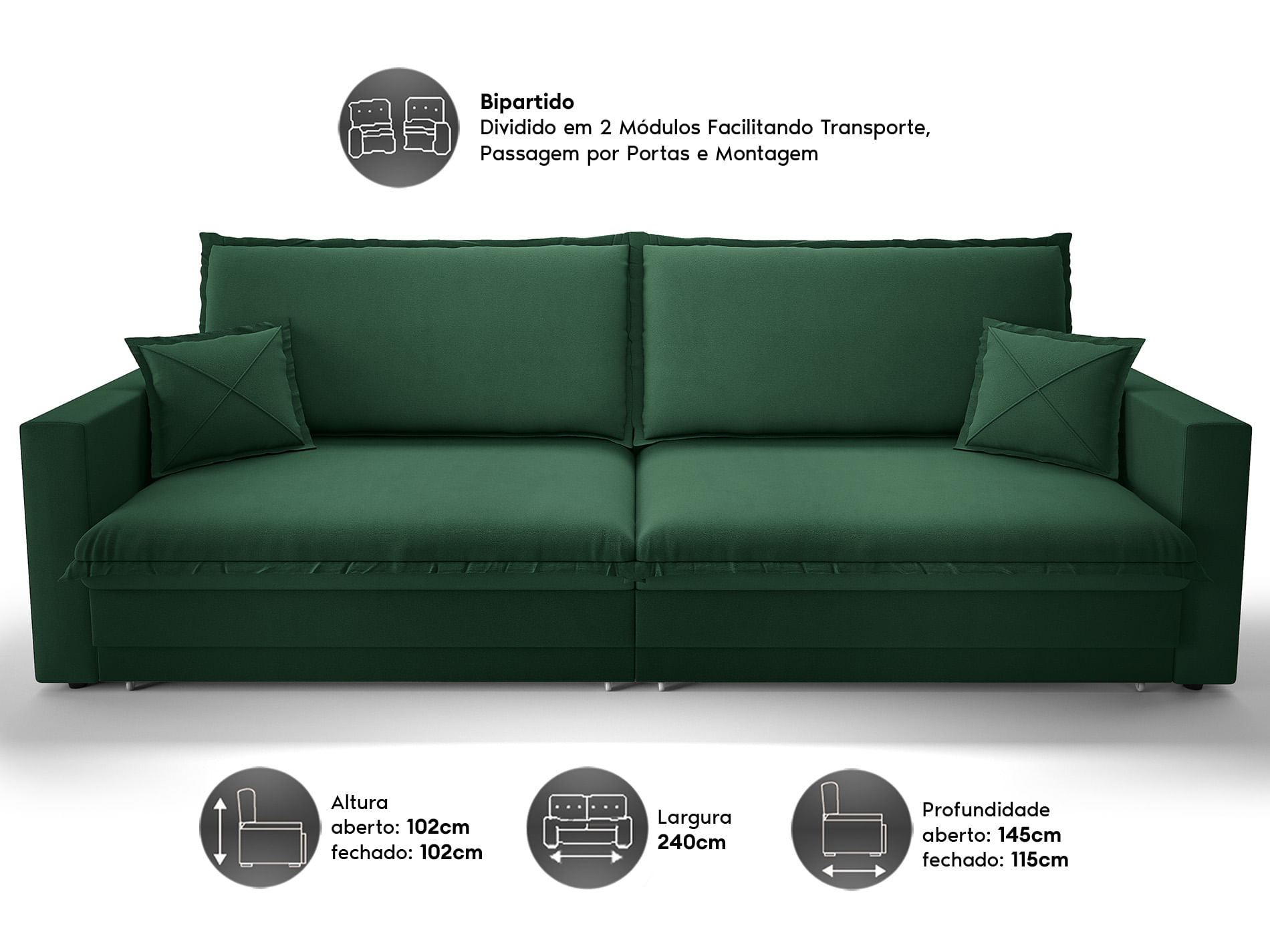 PROFUNDIDADE APROXIMADA: 115CM (Fechado) E 145cm (Aberto).