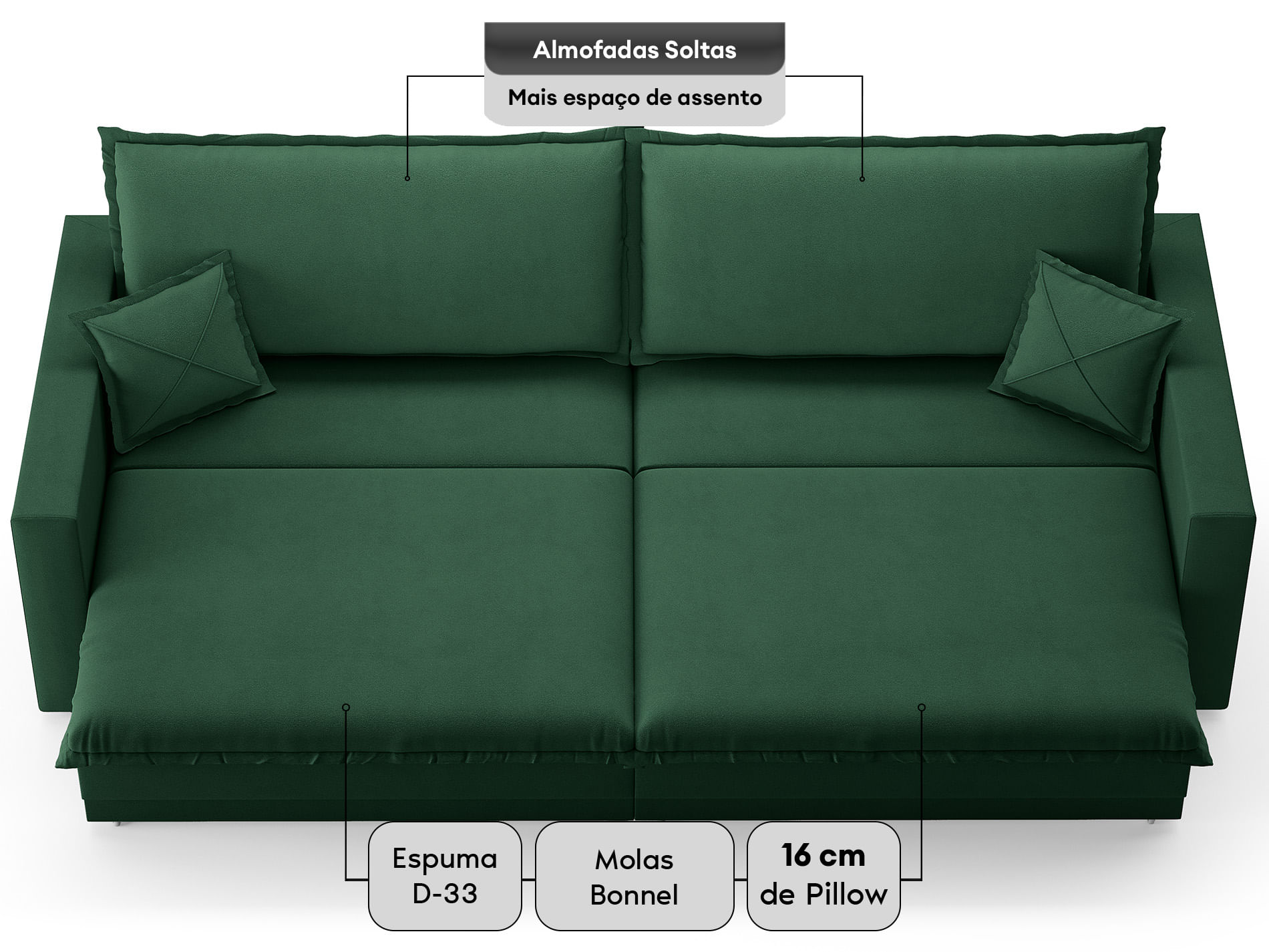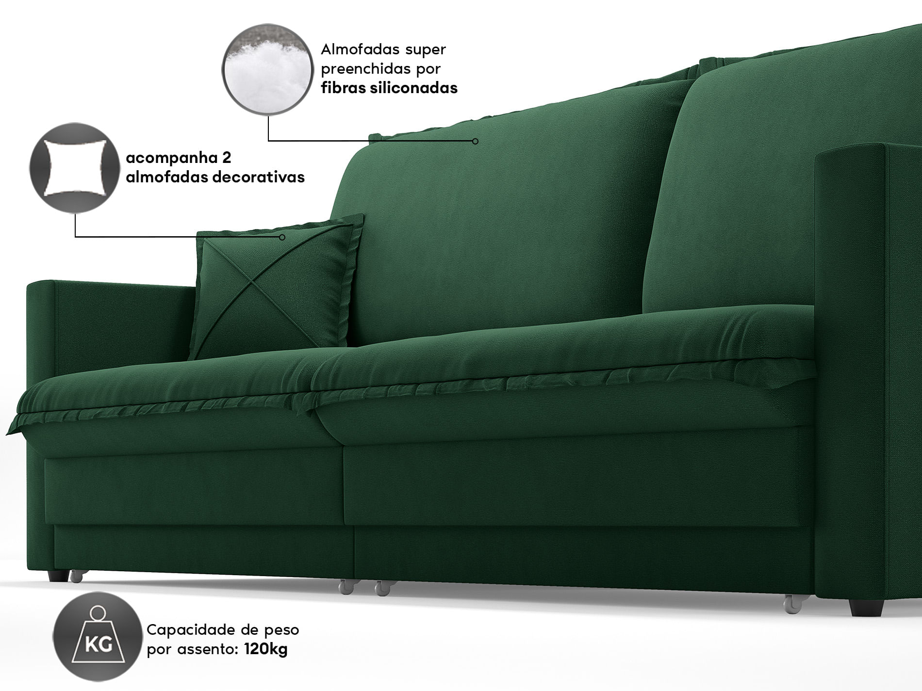 ENCHIMENTO DO ENCOSTO: Flocos De Espuma, Fibra De Poliéster, Siliconada e Percinta elástica.